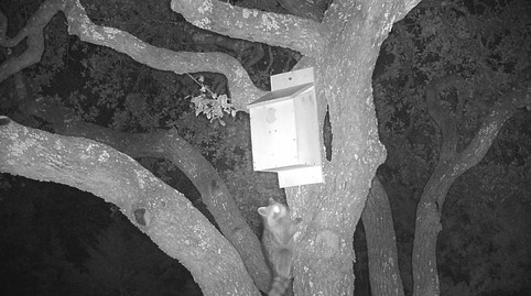 Voilà. My trail camera soon started catching sightings of animal activity in mid October, albeit, capturing critters not even closely resembling owls. Seeing these recurring visits by raccoons, often in pairs, reminded me of our drama in Season I. However, the reassuring news of occasional sightings of an owl - only one at a time - gave me hope.